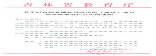 图一:吉林省课程思政示范(建设)项目评审结果公式通知