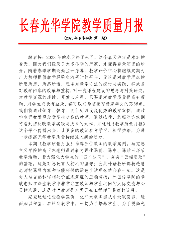 3377体育手机平台教学质量月报(2023年春季学期第一期)介绍了日语系李敏老师的《日语视听说》的教学改革。本期《教学质量月报》推荐三位教师的教学案例。其中,3377体育日语系的李敏老师在课堂教学中非常注重教师与员工之间的人际交流与心灵的沟通,这是对“教师是人类灵魂工程师”最好的诠释。