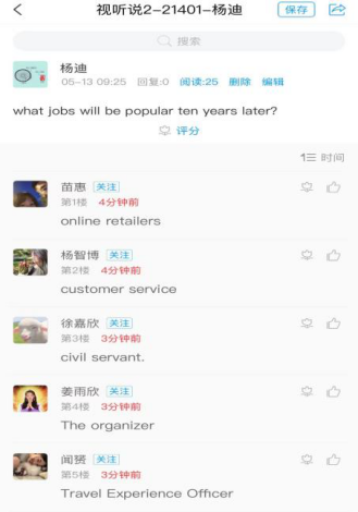 随后,教师进行提问:“What job will be popular ten years later in China?”