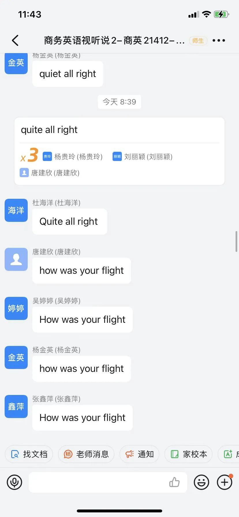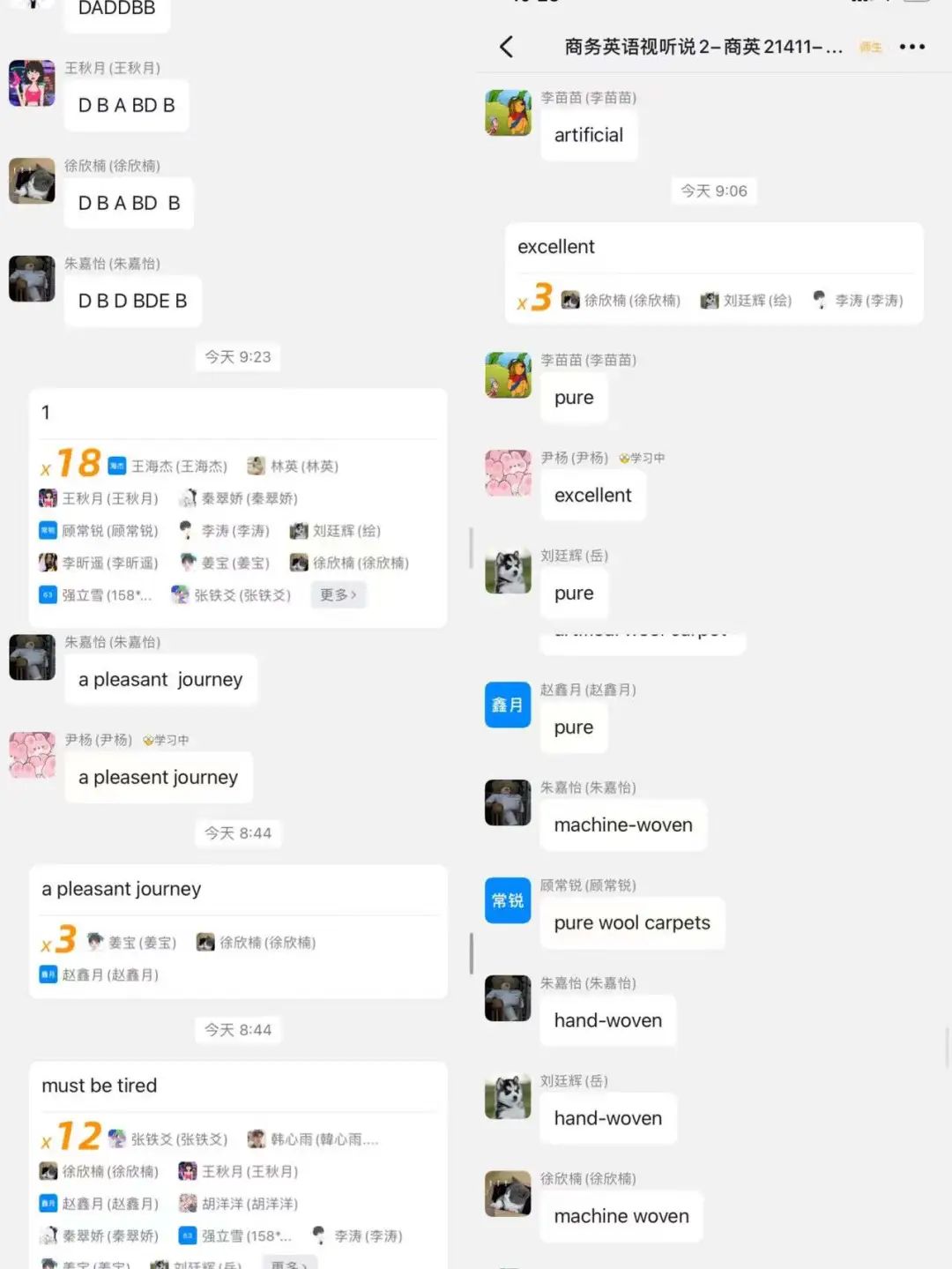 课堂上,继续加强趣味口语训练,改善员工的发音问题,员工们积极配合,踊跃连麦进行尝试;继续进行听力训练,在此过程中,同学们在评论区分享答案,老师在此基础上进行讲解,效果良好,同时根据课堂内容布置作业,在保证完成课堂基本内容的基础上,引导员工