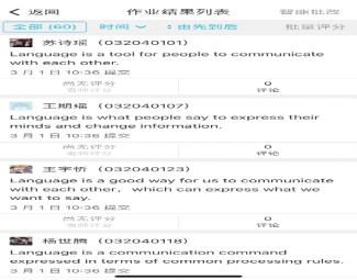 员工们需在蓝墨云班课上提交问答作业,教师在蓝墨云班课上打分后,在课上再次给予反馈。