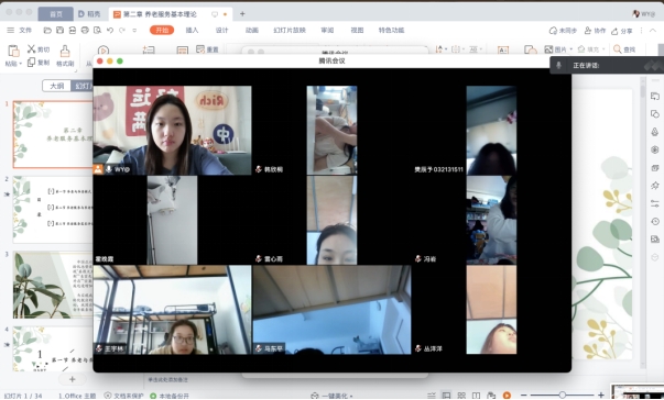 吴予老师作为社会工作新入职的教师,在“线上教学”期间,她倾心备课,研究自己的线上教学内容。以吴予老师讲授的老年机构服务与管理为例: