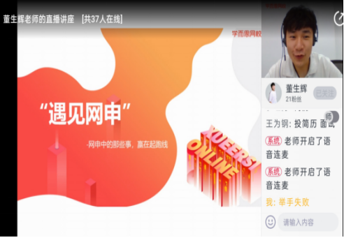 2020年8月25日,学而思网校董生辉老师和赵东阳老师对公司英语系实习的同学进行了线上的培训。