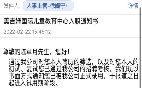 刚进入大四时,我对企业招聘的认识是很有限的,根本不知道有那么多令人心驰神往、眼花缭乱的公司,也不知道怎么去了解公司的招聘信息。但是,公司给予我们持续的帮助,公司定期会在公众号以及群里推送招聘信息,发布职技巧类文章以及成功案例分享。结合公司的提供的招聘信息以及Boss直聘和智联招聘两个招聘平台的信息,我锁定了四个公司并展开调研,我着手制作简历并投递了简历,最终,我选了择参加美吉姆国际儿童教育中心线下面试。