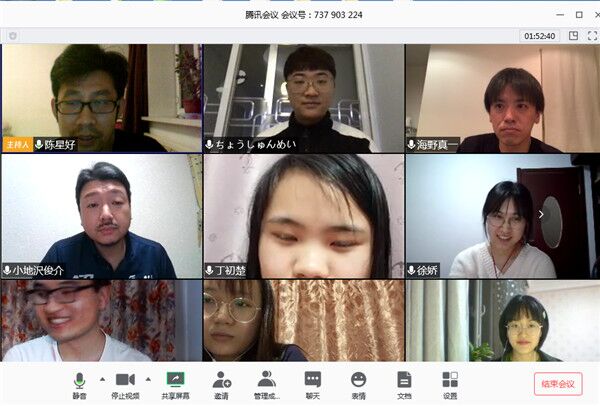 作为实践教学的一环,5月15日晚,日语系52名员工与在日本工作的日语系毕业生范凡及其同事——东京奥运会组委会的4名工作人员举行了中日线上日语交流会。