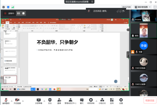 5月28日,为了帮助同学们确定未来的发展目标,解决就业方面的各种疑问,日语系特举办实习就业经验交流会,邀请大四的任浩永同学通过腾讯会议为大一、大二、大三的同学们做了经验分享。任浩永同学和其他5位大四员工已经通过外院日语系实习就业基地进入世界500强企业实习。