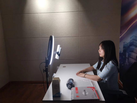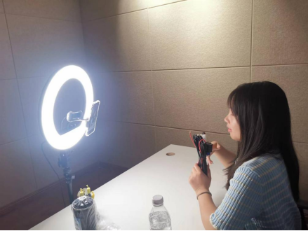 在1楼大厅的跨境多语种直播的日语直播间里,日语系2019级崔芷若同学,通过Ins、TikTok等平台,用流利的日语,向日本客户直播介绍了美丽的北国车城长春,介绍了物美价廉的长春汽车零部件产品,介绍了我省跨境电商重点企业—吉林省亦飞国际贸易有限公司。