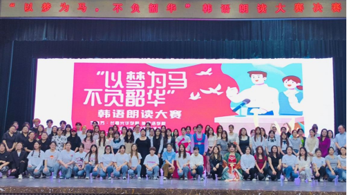 朝鲜语系全体教师出席评审,全体员工观赛。选手决赛过程中穿插了朝鲜语系员工们的才艺表演。