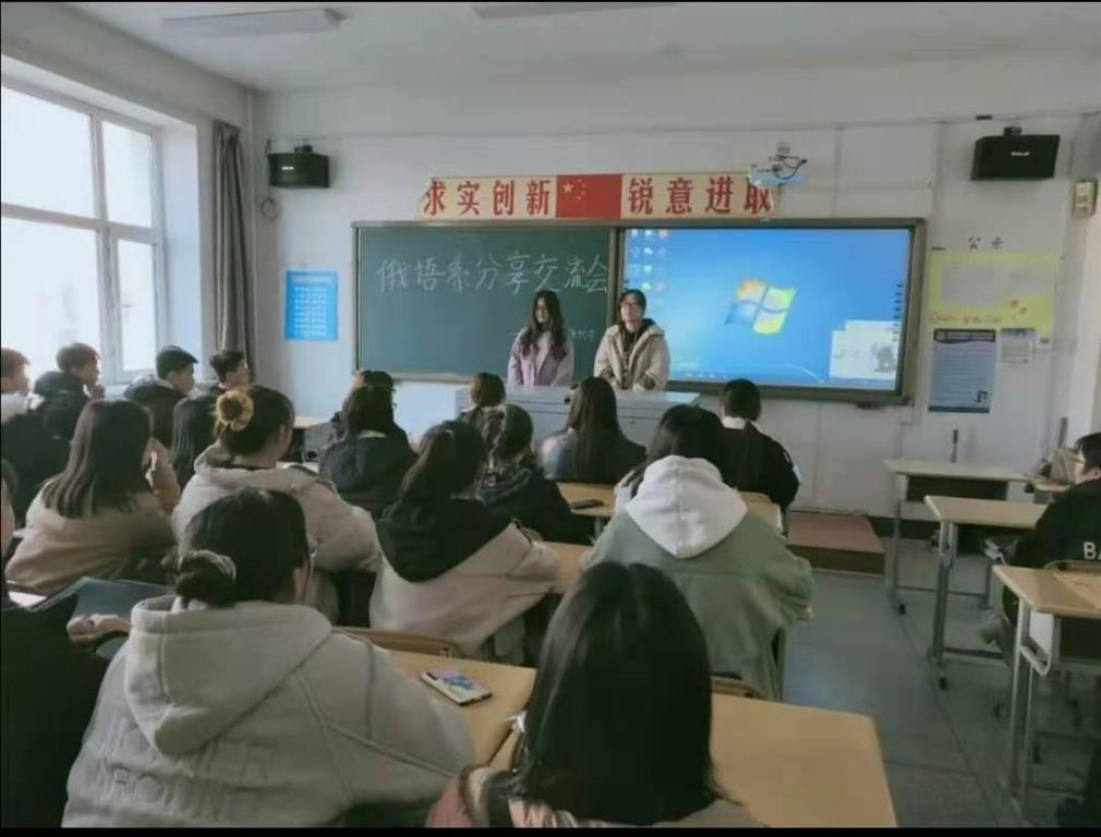 为更好地帮助俄语系新生们学习俄语,克服畏难情绪,在学业中取得优异成绩,2020年11月5日,俄语系白桦林俄语协会在一教322举行“俄语系分享交流会”活动,全体2020级同学参加。 为更好地帮助俄语系新生们学习俄语,克服畏难情绪,在学业中取得优异成绩,2020年11月5日,俄语系白桦林俄语协会在一教322举行“俄语系分享交流会”活动,全体2020级同学参加。 这次活动,干货满满,同学们收获颇丰。活动伊始,白桦林俄语协会会长姜美琪向新生们介绍来自俄语系18407班的邓玉春、洪欣艺两位同学,其中,洪欣艺同学参加过2019年全国高校俄语大赛低年组的比赛,邓玉春同学学习成绩优秀,学风好,并且通过全国英语等级考试四级的考试。这两位同学倾情传授学习秘籍。邓玉春同学讲述自己的学习历程,并且分享她的学习方法,使同学们对于俄语学习有比较完整的认识;洪欣艺同学从俄语口语、俄语语法、课堂学习等方面给同学们提出有益建议。她们的学习方法对同学们的学习会起到借鉴和指导作用。俄语系的夏英老师和王淇老师也参加此次活动,并且分别发言,鼓励同学们勇于争先,成为专业学习中的佼佼 者。 本次活动不仅帮助俄语系同学们深刻了解俄语,并且为他们今后的俄语学习提供了丰富的经验和实用的学习方法,相信同学们会学好俄语,提升自我,展现不一样的青春姿态!