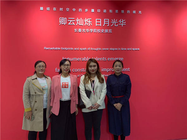 校庆当日商务英语系主任许晓慧、商务英语系老师祁淑红、徐代陪同刘芳宏同学参观了校史馆,从照片和文字中追忆光华20年的成长与辉煌。老师们与刘芳宏同学在校园每一个角落留下了永远的回忆,将母校的一草一木留在记忆里,将母校奋斗向上的精神牢记于心。
