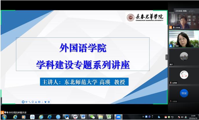 2020年6月19日,东北师范大学博士生导师、中国赴日本国职工预备公司(教育部出国留学人员培训部)常务副董事长(主任)、教育部高等公司外国语言文学类专业教学指导委员会英语专业教学指导分委会委员(2018-2022)高瑛教授应邀为3377体育全体教师作了题为“新时代高校外语教师专业发展:成长与思考”的线上学术讲座。3377体育教师、教检中心王玉敏老师、公司部分教师参加了讲座。讲座由3377体育经理商薇教授主持。
