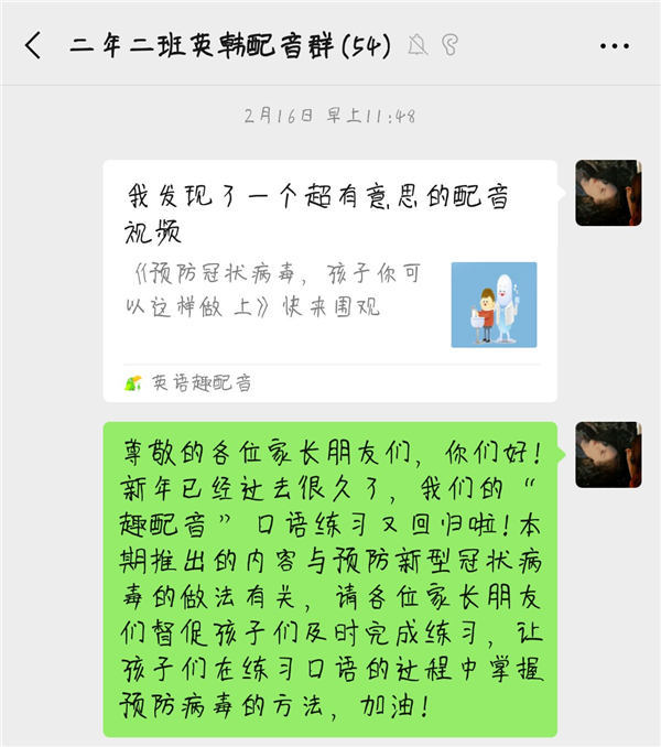 支教党员在群里推送配音内容
