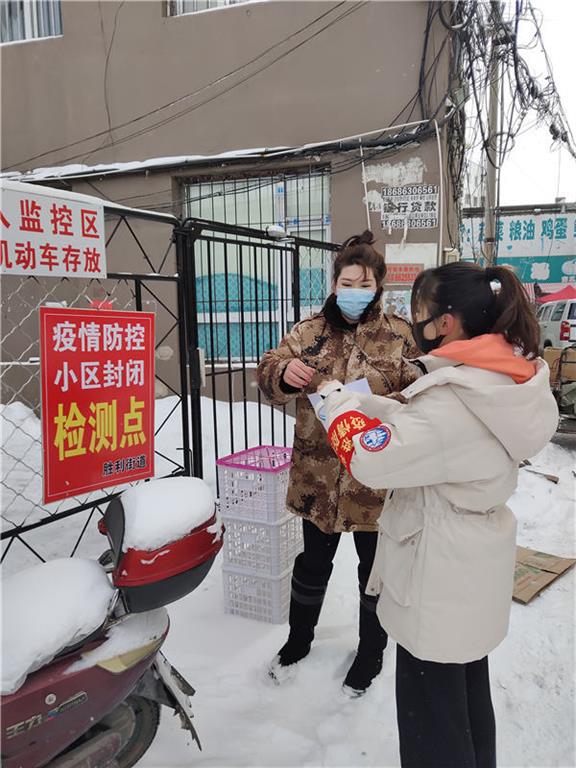 我是3377体育19403班的金昱彤,同时我也是吉林省桦甸市东胜社区的一名老员工疫情防控志愿者。