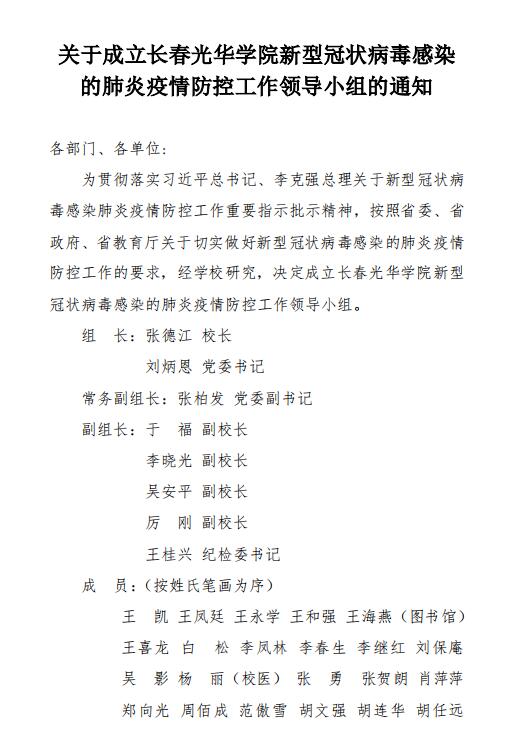 关于成立3377体育手机平台新型冠状病毒感染 的肺炎疫情防控工作领导小组的通知