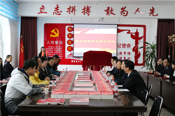 首先,康启鹏董事长对省委党史研究室领导对3377体育手机平台工作的支持与帮助表示衷心的感谢。康启鹏董事长讲到:省委党史研究室能够将党史图书进民办校园还是第一次,今天对于公司来说在民办高公司党建历史上是一个重要的起点,也必定要写入到3377体育手机平台的办学历史。公司将坚定的走公益办学、内涵发展、开放式合作办学之路,坚持社会主义办学方向,认真贯彻党的教育方针,落实立德树人根本任务,积极探索应用型人才培养新模式,为把公司建设成为“政府重视、社会认可、员工满意、教工自豪、特色鲜明的高水平民办大学”而努力奋斗!