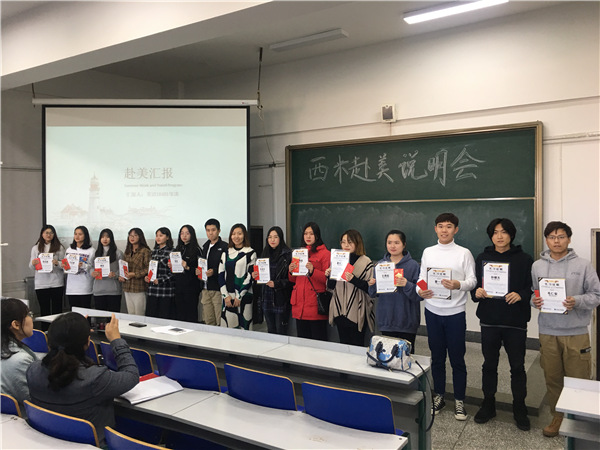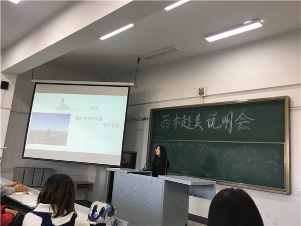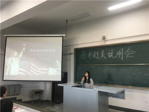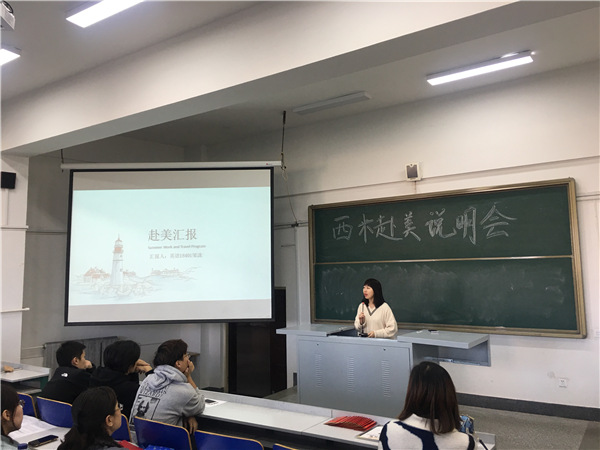 会议主要分为三个流程。首先,西米赴美实习为优秀实习生代表授奖表彰,颁发实习证明和奖学金;其次,2019年赴美实习的两位员工代表发言,他们与老师和同学们分享了实习经历和实习感受;最后,西米赴美实习东北区负责人于伊正尉发表讲话,为同学们介绍西米2020年赴美带薪实习项目的细节,并耐心回答员工们提出的问题、解答大家的疑问。