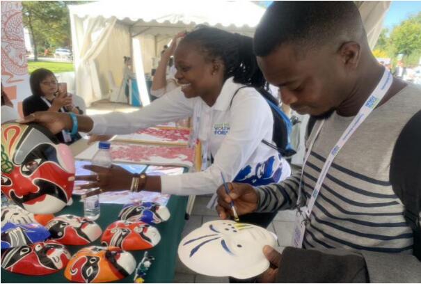 开幕式结束后,各国参会代表参观中国非遗文化展览,感受了书法、茶道、泥塑、脸谱的魅力,并合照留念。