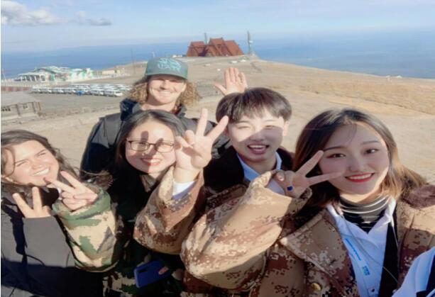 公司语言志愿者和国际友人在天池合影留念