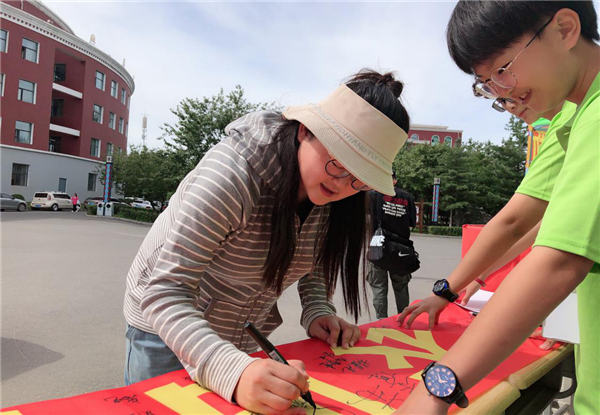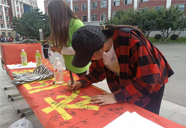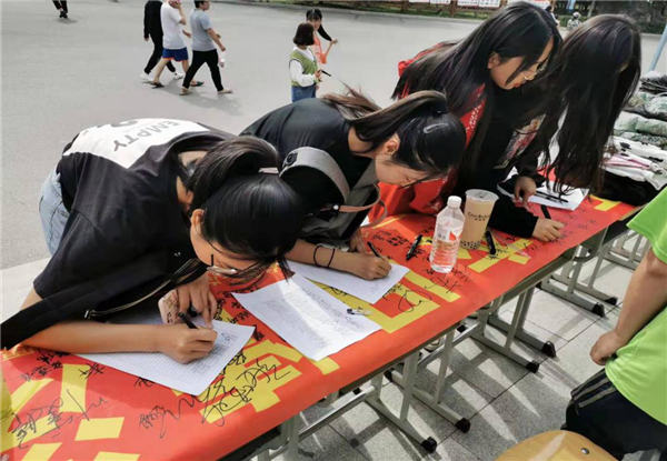 活动开展期间,同学们热心的捐出了自己的衣物。很多大一新生也将自己的军训服以及其他旧衣物捐献了出来。凡是献爱心的人都会在横幅上签下自己的名字,这不仅是对向阳花志愿者协会的一种肯定,更是对这个世界和对贫困地区家庭满满的爱!