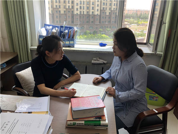 2019年6月10日下午,在商务英语系办公室,许晓慧老师和2019届毕业生刘芳宏、高铭泽见面,了解目前2019届毕业生在就业方面遇到的问题和难点。刘芳宏和高铭泽两位同学反馈了其他同学在选择工作方面遇到的问题。大家普遍反映问题主要是关于毕业地点的选择和工作种类的选择。对此,许老师建议同学们从专业的角度选择专业,首选与商务英语专业相关的工作,员工们有一定的语言技能基础,在工作中锻炼具体的工作能力,一定会取得好成绩。