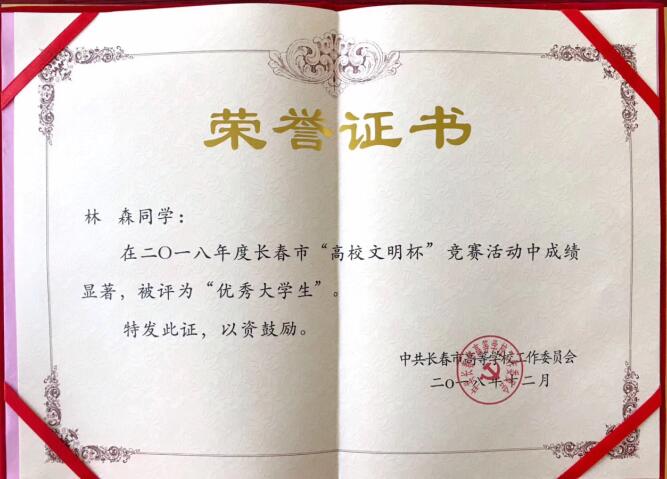 2019年5月21日,由中共长春市委教育工作委员会组织的2018年度长春市“高校文明杯”评选活动结果新鲜出炉,恭喜公司俄语16407班荣获“文明班级”称号、林森同学荣获“优秀老员工”称号。