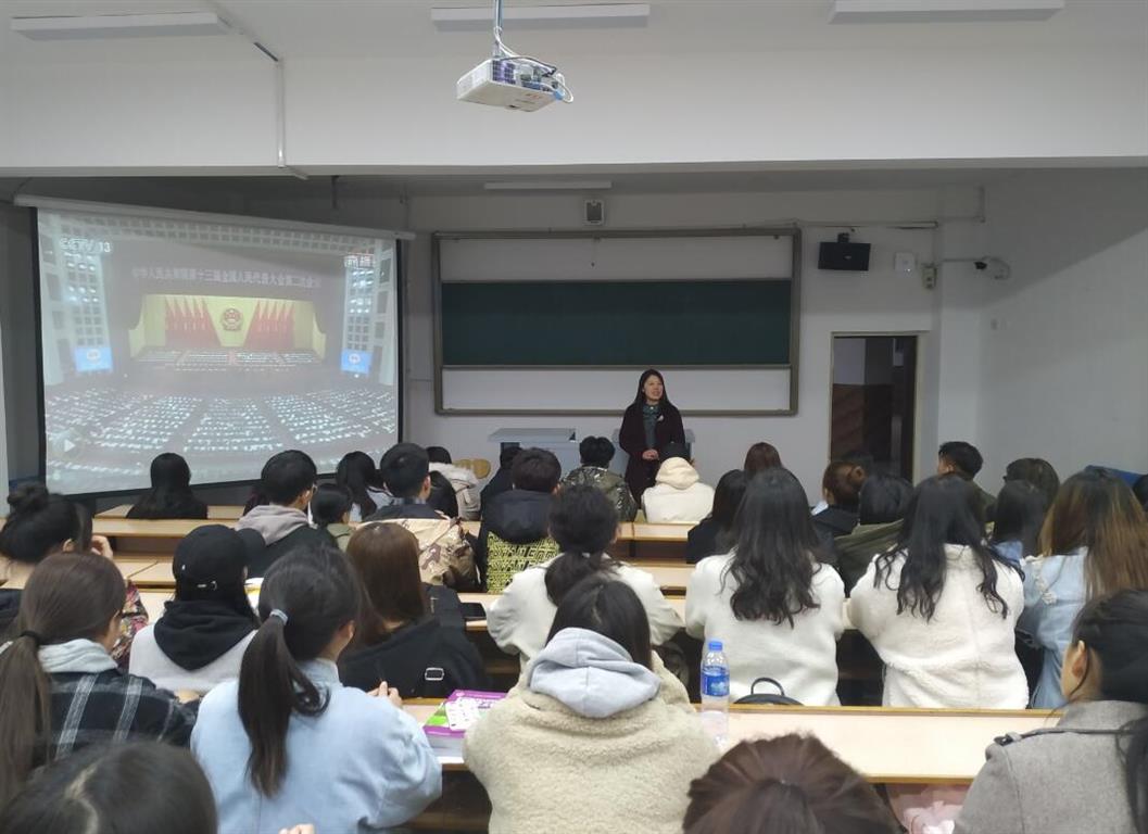 本次会议的举行受到了广大人民的关注,对员工也有着深刻的影响,故此3377体育中国梦践行社于2019年3月12日晚17:00在一教阶梯7举行了“不忘初心跟党走,学习两会我先行”活动。出席本次活动的有公司党总支副书记戚旭娣、中国梦践行社社长孙榕珠、副社长孙欢,中国梦践行社全体成员及部分员工党员参加了本次活动。