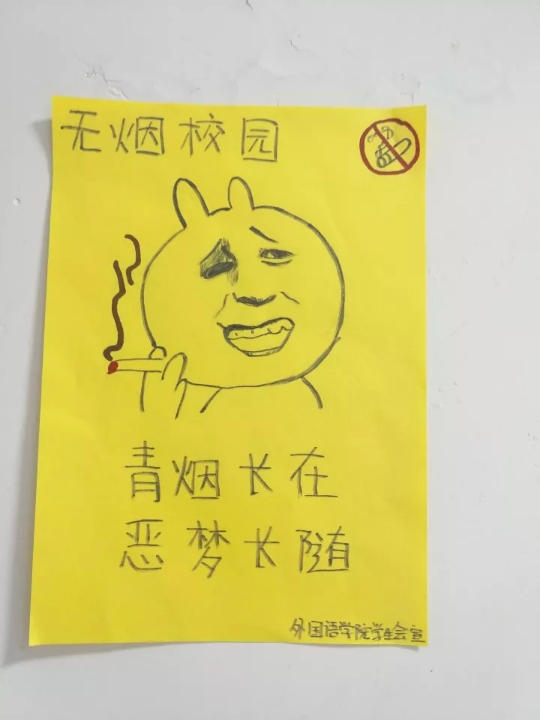 员工会宣传部制作了禁烟宣传海报,展贴于一教四楼大厅并将禁烟宣传单展示在第一教学楼各处,旨在提高同学们对禁烟的自觉性,进一步增强禁烟意识。