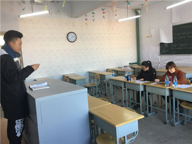 此次语音测试2017级两个班级同时进行,员工按学号顺序进行测试。首先由第一位员工随机抽取一个题目进行2-3分钟备考,便开始正式测试。前一位员工测试的同时,下一位员工抽题备考。测试内容包含:俄语字母表、读音节、读单词、读对话和读课文以及自我介绍。老师听取员工发音并记录成绩,之后会为出现错误的员工纠正发音。历时大约1小时30分钟,本次“2017级俄语语音测试”圆满结束。