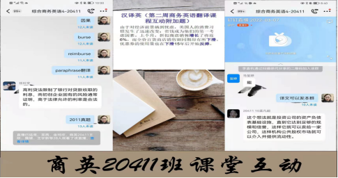 商务英语翻译是针对19级商务英语专业员工的专业课程,双周的周二和周四有课。由于课程难度较大,需要员工课前预习,课后完成句子和段落翻译作业。多数员工能够课前预习,完成课后作业。课上互动性相对综合商务英语4节奏会比较慢,原因是商务英语类句子难度较大,员工完成课堂翻译任务的时间较长,线上课程老师会给予更充足的引领和讲解,以便员工能更加快速的完成课堂练习任务。