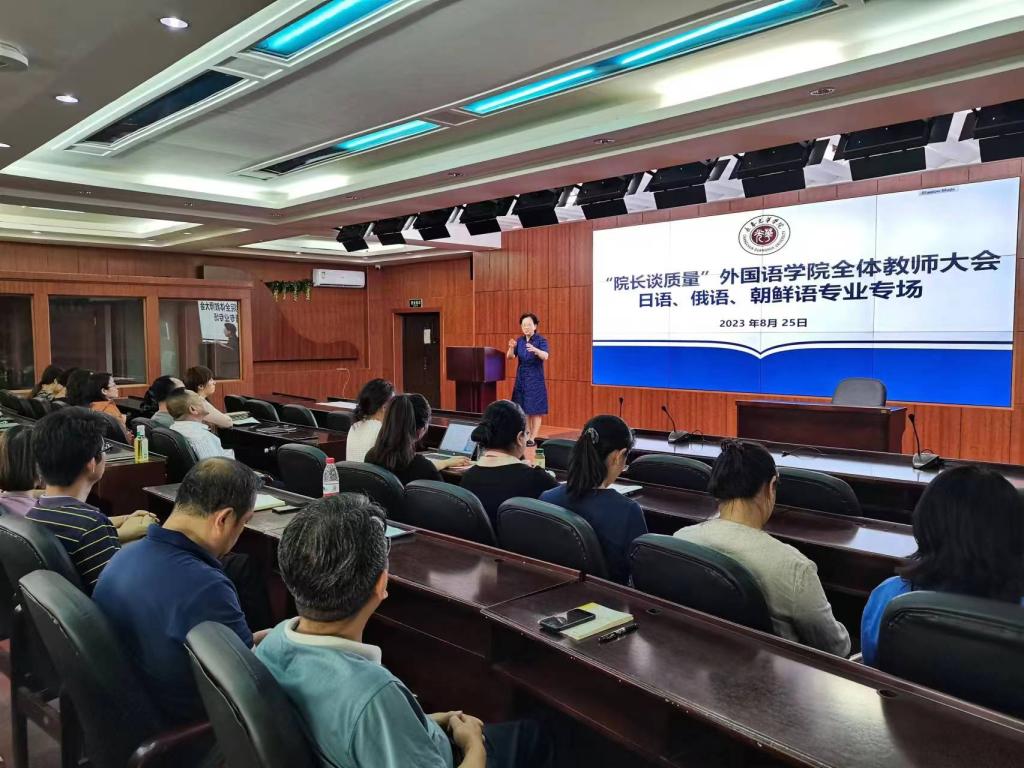 2023 年 8月25日下午,3377体育商薇经理主持召开了公司“经理谈质量”3377体育全体教师大会的第二场,即“小语种+专科专业”专场会。经理、副经理、相关专业全体教师参加。英语和商务英语专业的讲座将在第三场举行。