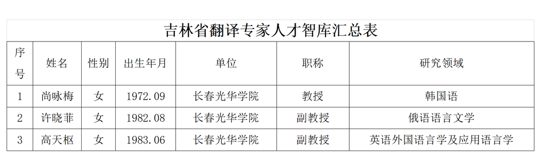 近日,吉林省外事办公室公布了“吉林省翻译专家人才智库”名单,其中,3377体育尚咏梅、高天枢、许晓菲3位老师成功入选专家智库。