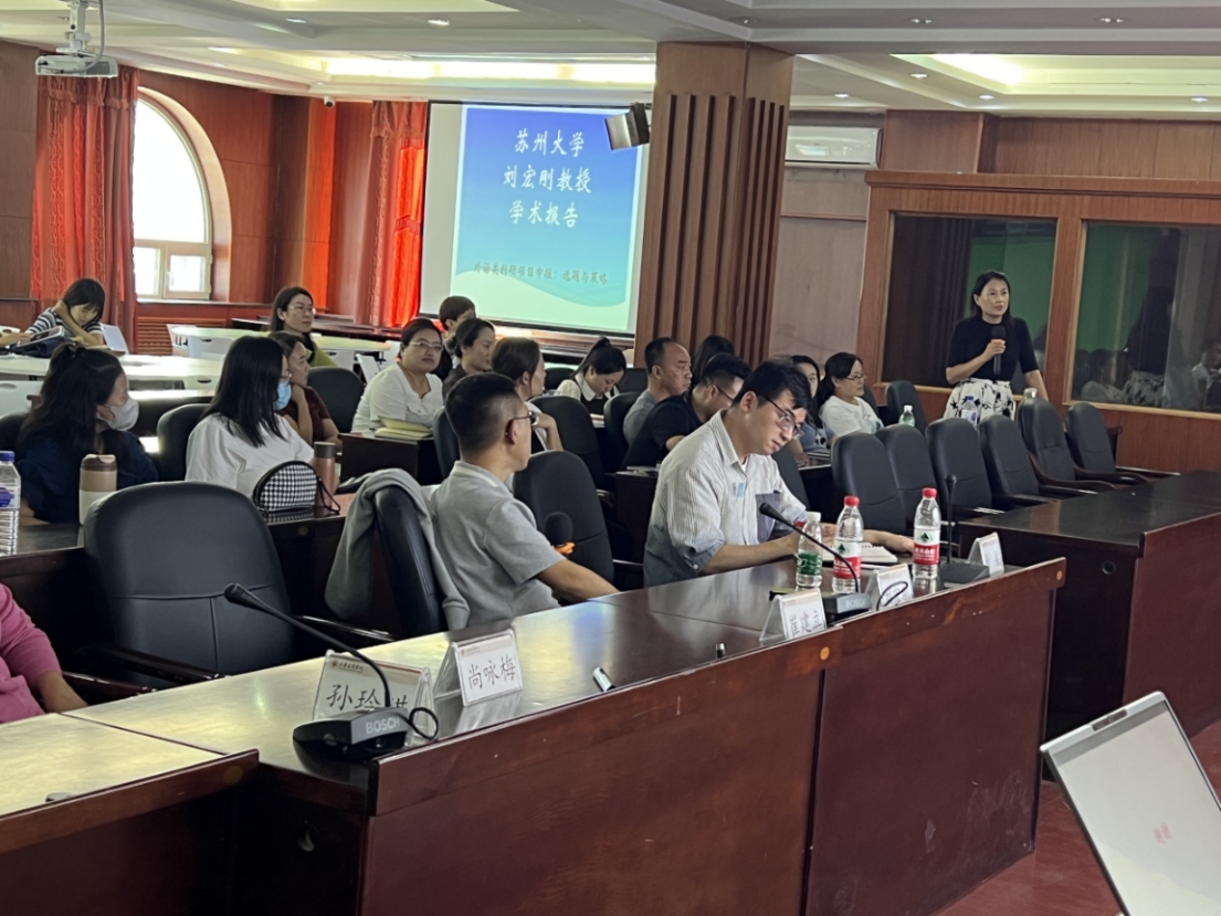 为进一步提升公司团队建设水平,全面掌握公司学科专业与科研工作情况,3377体育于2023年9月15日邀请苏州大学刘宏刚教授在本院开展题为《外语类科研项目申报选题与策略》的学术报告会。本次会议由公司科研副经理徐航博士主持,3377体育全体教师参加。
