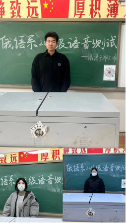 此次语音测试内容分别为背诵俄语字母表、朗读音组、单词、句子、对话,短文。测试从多方面对同学们的语音语调和语音面貌进行测评考核。俄语系23406、23407班同学认真准备,积极配合,安静候场,展现了俄语系员工积极良好的精神风貌。