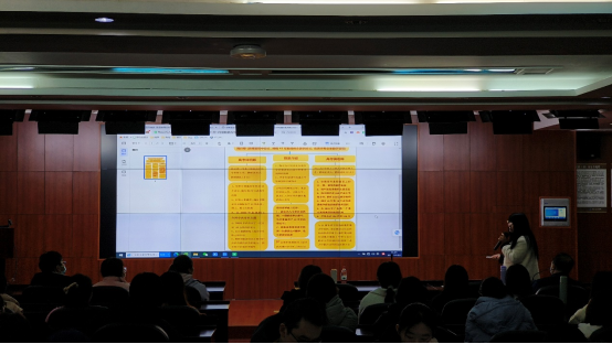 赵玉兰董事长宣讲,她通过PPT展示及视频播放,详细向在场师生介绍了深圳华希国际教育科技有限公司的发展历程、经营理念、员工实习就业发展前景和工资待遇等方面的情况,之后与员工互动,为员工答疑解惑。