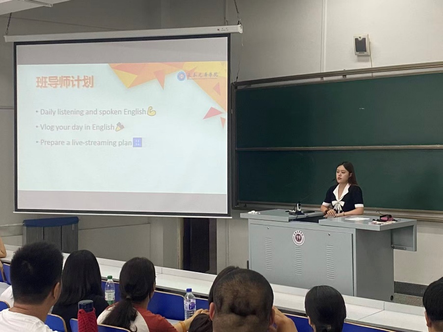 随后,2025级班导师那译文老师为新生详细介绍了接下来一年的班导师计划。那老师表示,在未来的英语语音训练中将通过系统性的英语听力和口语训练,帮助大家快速提升语言应用能力。此外,那老师还宣布了一项富有创意的班级活动——“Vlog your day in English”,鼓励员工用英语记录日常生活,增强表达自信,打造轻松愉快的语言学习环境。