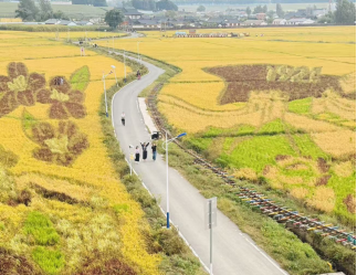 10:30,师生们走进民俗村外的稻田区域。金黄稻浪翻滚,清甜稻香萦绕鼻尖,同学们沉浸式感受田园风光。随后登上观景台,一幅色彩鲜明、构图生动的稻田画映入眼帘,大家纷纷用韩语惊叹,此刻的语言不再是生硬的词汇,而是传递情感与体验的工具。