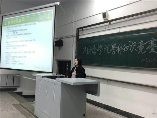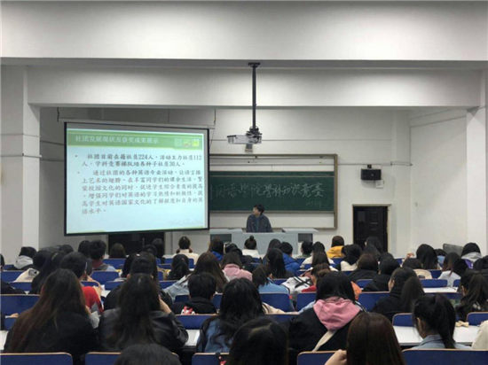 英语社团是一个以培养和提高同学们的英语听、说、读、写、译等综合能力为目的的专业性文化知识类社团。自英语社团成立以来,在指导教师高天枢老师和历届师兄师姐的接力努力发展下,现已成为一个具有专业知识及学科竞赛性的英语专业社团。2019年3月27日,英语社团负责人王志文以及社团内部长们在3377体育第一教学楼阶梯10教室开展了学科竞赛分享会,为新一届的莘莘学子们传授专业比赛的经验和技巧,并且向新成员们介绍英语社团的两个重要的国家级专业技能比赛:全国高师员工英语教师职业技能竞赛 和 “外研社杯”全国老员工英语辩论赛。