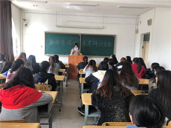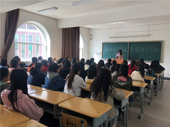 张若以同学首先为同学们介绍了教团队格证的分类,并建议大家据自己的实际能力进行选择考取。并且推荐了考取教团队格证所需准备的相关书籍。接下来就同学们最关心的考研问题展开讲解。在备考政治这方面推荐了肖秀荣的作品和《考研政治冲刺背诵笔记》还要经常关注央视新闻。在考研英语中推荐了《恋练有词》这本词汇书和《王江涛考研高分作文》等。会上,17级同学们认真听讲;会后,17级的同学们对张若以学姐的分享表现出极大的热情,纷纷提出问题并加了学姐的微信,继续跟进咨询。