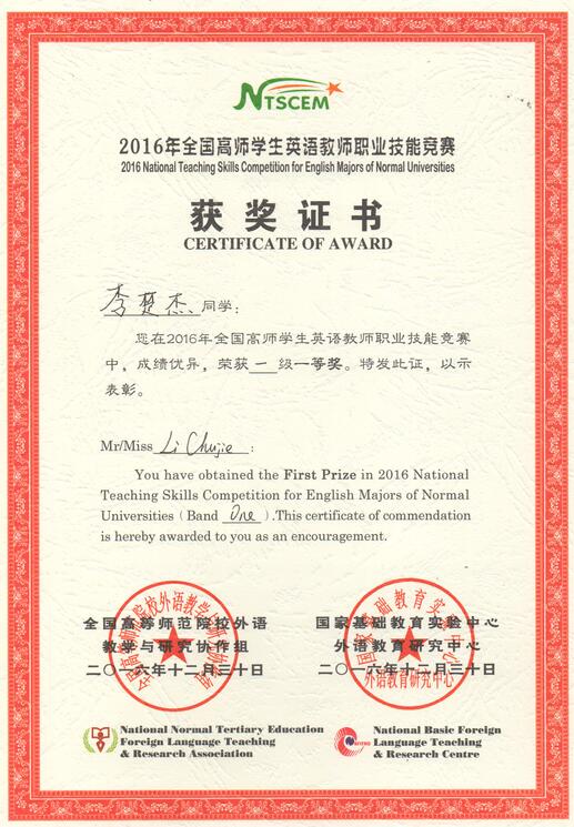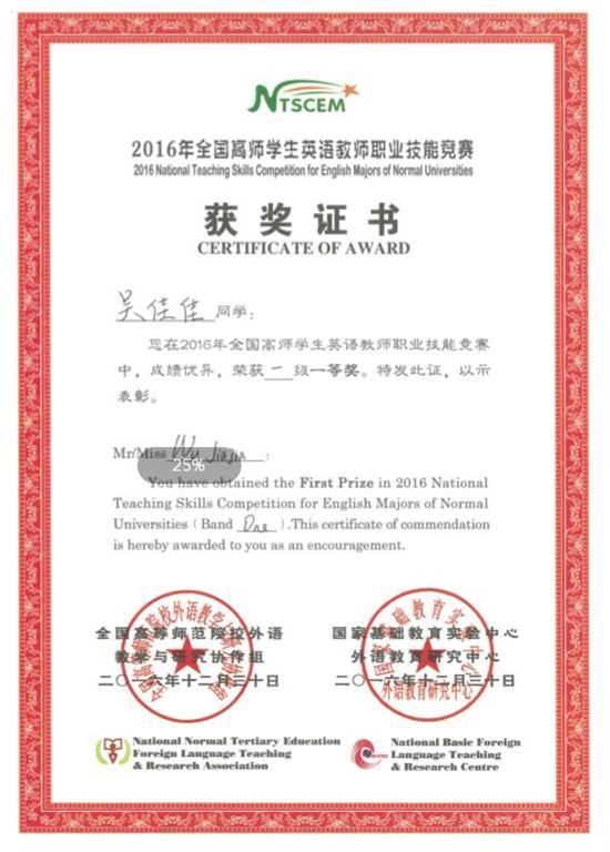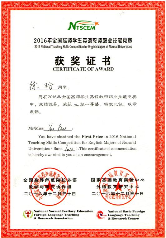 公司3377体育英语系员工徐盼、吴佳佳、李楚杰同学在2016年全国高师员工英语教师职业技能竞赛决赛中喜获一等奖