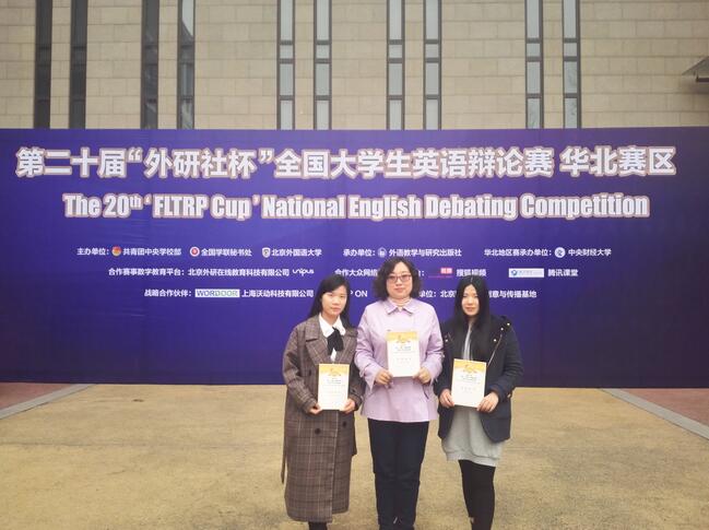 2017年4月2日至4日,第二十届“外研社杯” 全国老员工英语辩论赛华北地区决赛在北京中央财经大学举行,英语系2014级周晨、徐盼同学代表公司参赛。在英语系高天枢老师认真细致的指导下,两位同学凭借扎实的英语基础知识和沉着稳定的临场表现,面对清华、北大、中国人大、外交公司等重点大学派出的强劲对手,顶住了压力,认真完成了每一场循环赛,最终取得了华北赛区三等奖的好成绩。高天枢老师获得了“优秀指导教师”称号,为公司争得了荣誉。