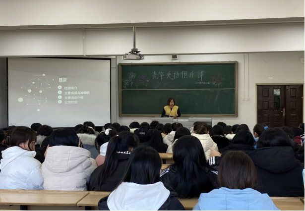 通过播放以往活动的视频,同学们对光华英语俱乐部组织的活动表示非常感兴趣,也十分希望能够加入光华英语俱乐部,提升自己的专业能力。同时霍静社长还给大家介绍一些适用于英语专业学习的公众号,方便大家对时事新闻、教材的学习。