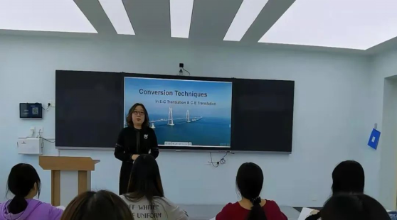 高天枢老师在公司领导的关心鼓励下,积极参赛备战。将翻译技巧学习与课程思政有机结合,在社会主义核心价值观的引领下,以港珠澳大桥为翻译语料载体,在传授翻译策略的同时,融入课程思政,培养员工的爱国主义情怀,作为外语人肩负中国语言文化外宣的重任。高天枢老师的比赛作品真实地再现了课堂教学,取得了优异成绩。