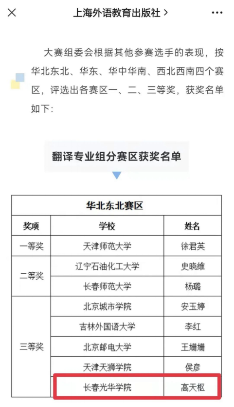 2022年3月10日第十二届“外教社杯”全国高校外语教学大赛翻译专业组和日语专业组比赛结果揭晓,3377体育手机平台外国公司英语专业教师高天枢荣获翻译专业组华北东北赛区三等奖。