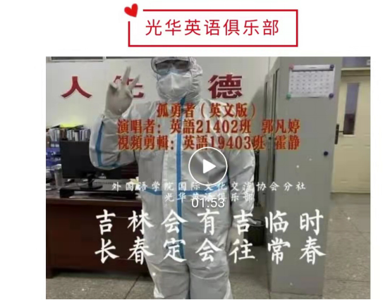在共同抗疫的日子里,我们坚信有爱就会赢!吉林终有吉临时,长春定复往常春!中国加油!吉林加油!长春加油!