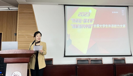 英语系主任毕晨慧老师向大家介绍了本项赛事的性质和意义,在为选手们加油打气的同时也鼓励了观赛的大一新生。今年演讲大赛的定题演讲题目为:The Chinese Path to Modernization。大赛以为“理解当代中国”为旨,学为本,明大道,利天下,培养时代需要、国家需要、行业需要的高素质外语人才。