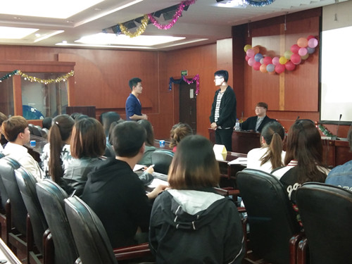 本次竞赛分为初赛和决赛,共有36名选手参赛。大一6组选手、大二2组选手经初赛进入决赛。决赛开始前,由“伊吕波”日语协会会长金美龄同学为现场选手和观众讲解了决赛的规则及比赛环节。