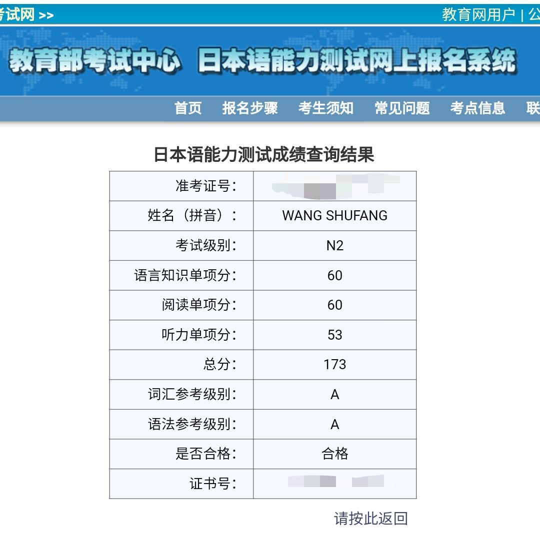 在此之前,日语系2018级张凯杰同学取得了2020年12月的国际日语能力N2考试的172分的优秀成绩。