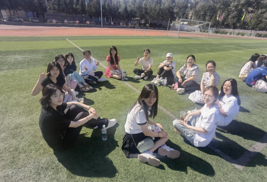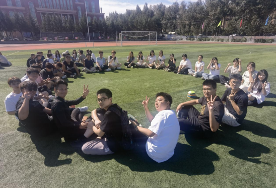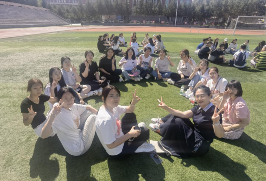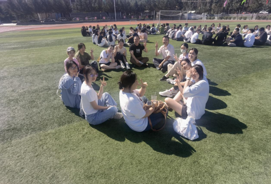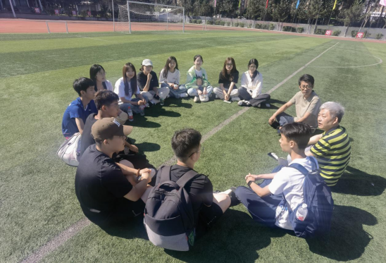 室内环节结束之后,师生们一起走到北校区的运动场。这里碧空如洗,绿茵如翠,这里清风徐徐,笑语阵阵。师生们席地而坐,畅谈同学们未来的学习和生活。