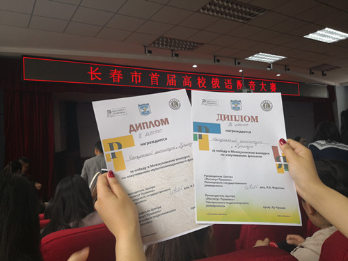 公司俄语系参赛选手在外教达丽雅·安德列耶夫娜女士带领下参加了比赛。比赛前,她们精心准备,积极备战,比赛中发挥稳定,表现出色,其中李超华、朱晨子、杜敏、李博荣获动画片组配音第二名,楼前燕、赵容毅、王丝雨、赵敏、朱晨子荣获故事片配音组第三名。