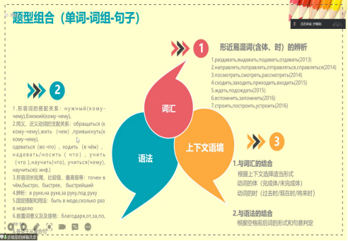 许老师通过对历年俄语专业四级考试中完形填空题型的分析进行讲解,从完形填空题型由来到历年真题的讲解带领同学们遨游俄语学习海洋。